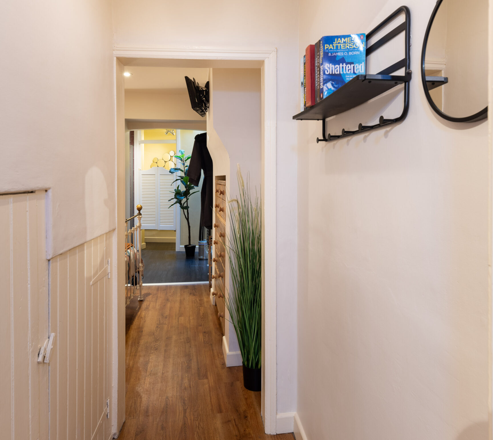 The bedroom offers a comfy double bed and is beautifully located out to the back of the property away from Coombe Street, providing a cosy, peaceful place to relax and sleep.